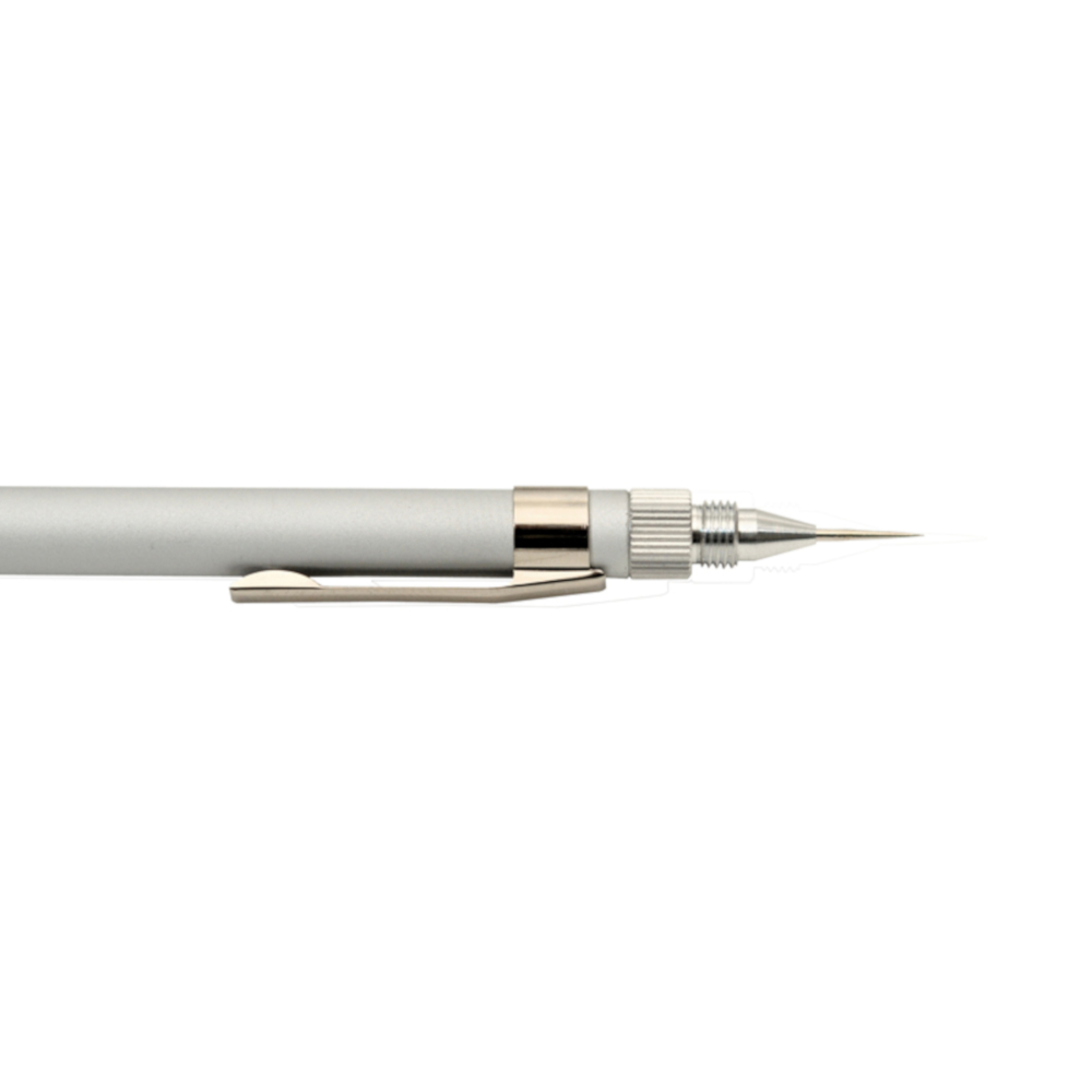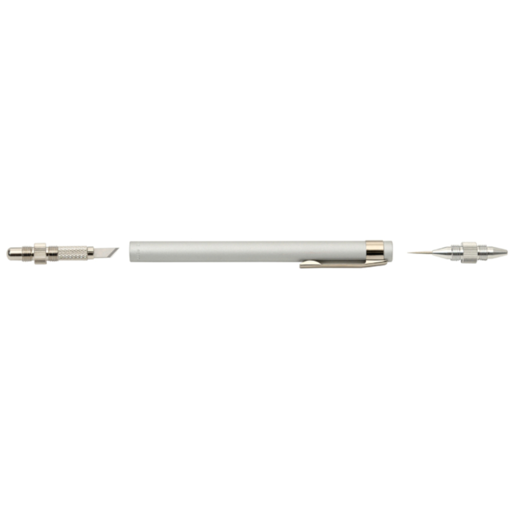 NT Cutter’s Three-in-One precision tool; art knife, needlepoint and burnisher all in one light-weight aluminum holder with a noncorrosive high-quality zinc chuck and a nonslip nickel-plated brass collar to hold blade secure for maximum performance.