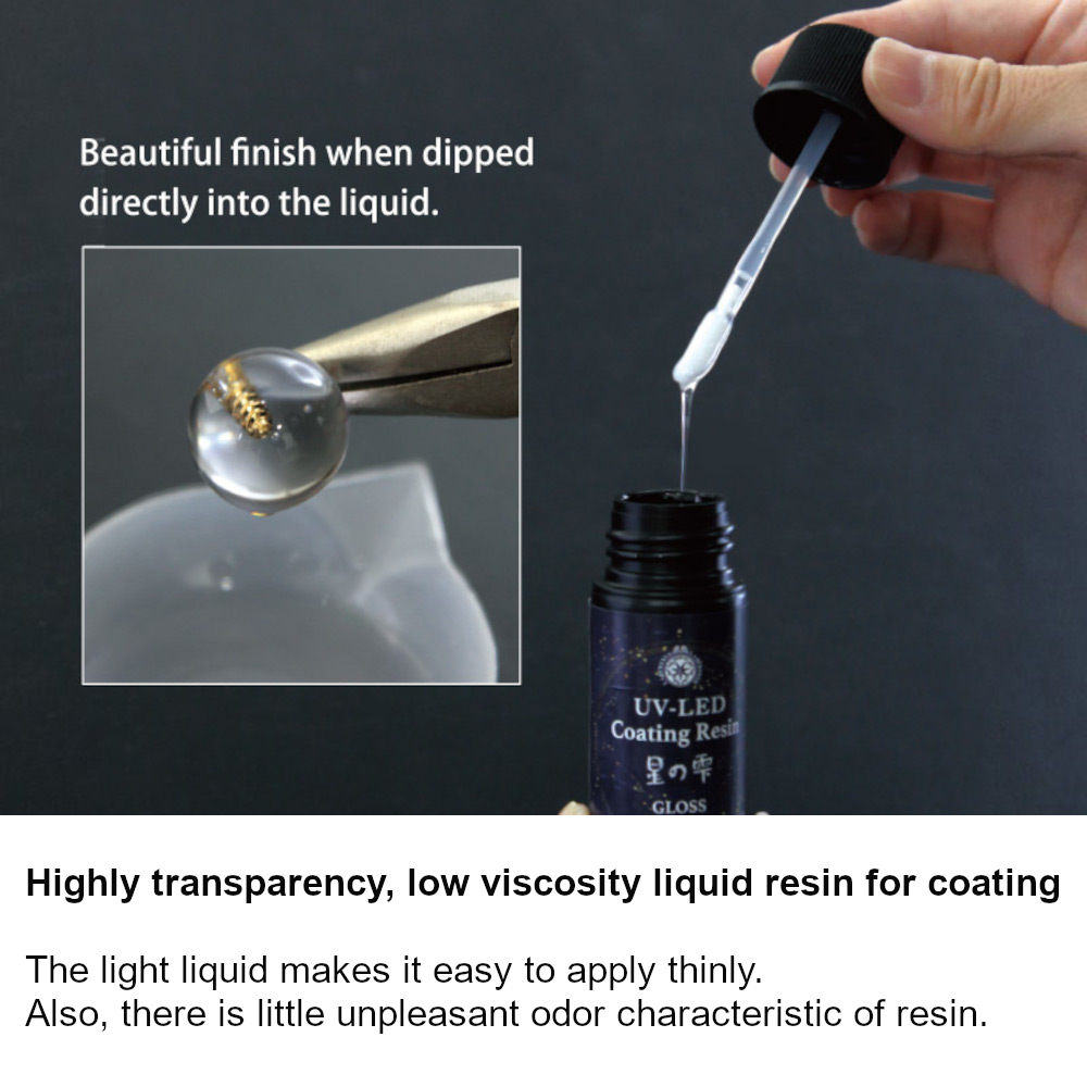 UV-LED Coating resin “Star Drop Gloss”” is specialized for surface finishing of art works. Gloss type is available in two sizes, 10g and 30g (This item is 30g)