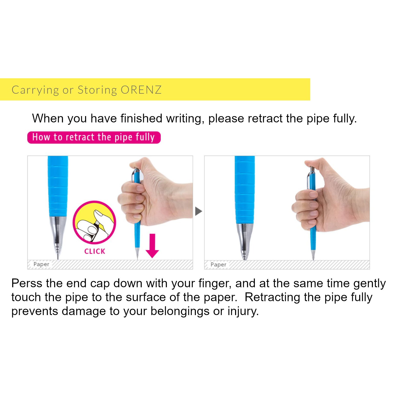 Orenz Nero has an Auto Load lead system which allows you to write or draw without the need to keep re-knocking/clicking the top.