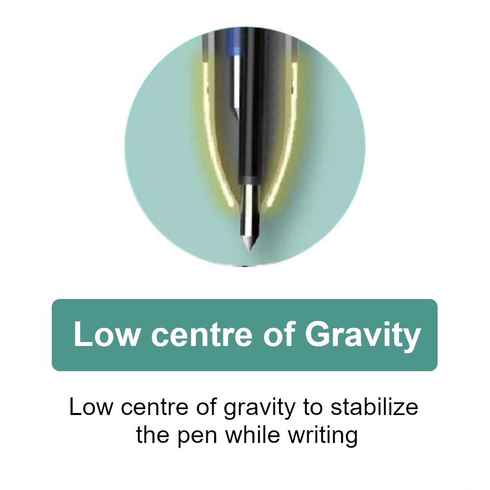 • Low centre of gravity to stabilize  the pen while writing.