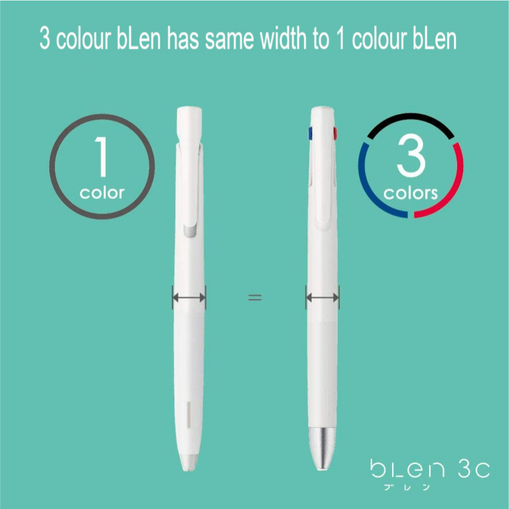 This bLen 3C has 3 colour of inks in one pen and the same barrel width of 1 colour ink bLen pen.
