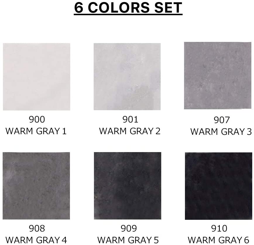 Colors include in 6 set : 900 Warm Gray 1, 901 Warm Gray 2, 907 Warm Gray 2, 908 Warm Gray 4, 909 Warm Gray 5 and 910 Warm Gray 6