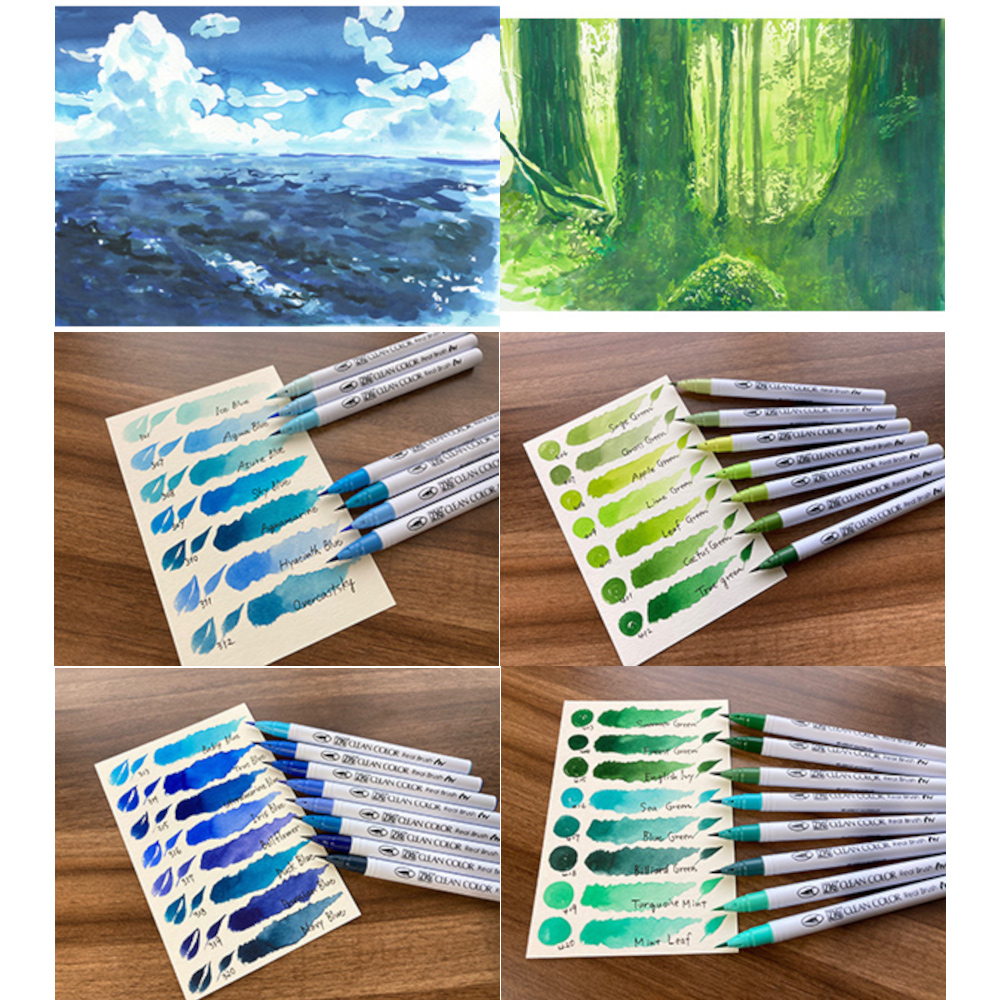 With a single ended nylon bristle brush tip, ZIG Clean Color Real Brush is a water-based dye with a range of 180 colors. (This set contains 30 colours)