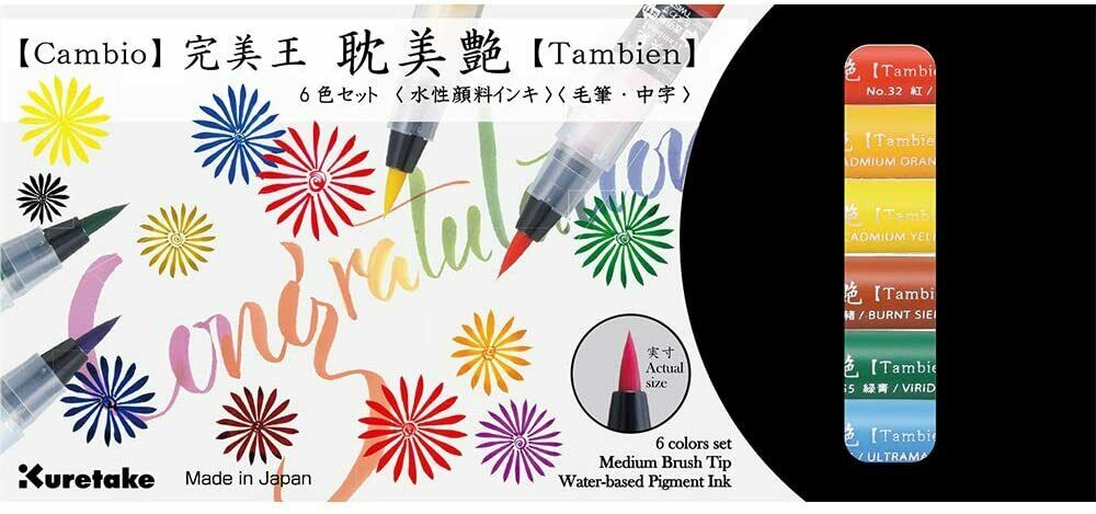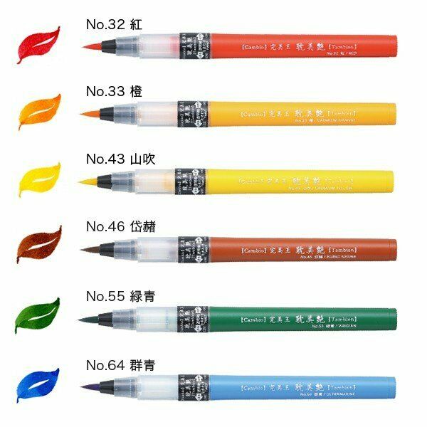 Colored, large-tip brush pen that is easy to use for writing or coloring. Calming, Japanese colors.