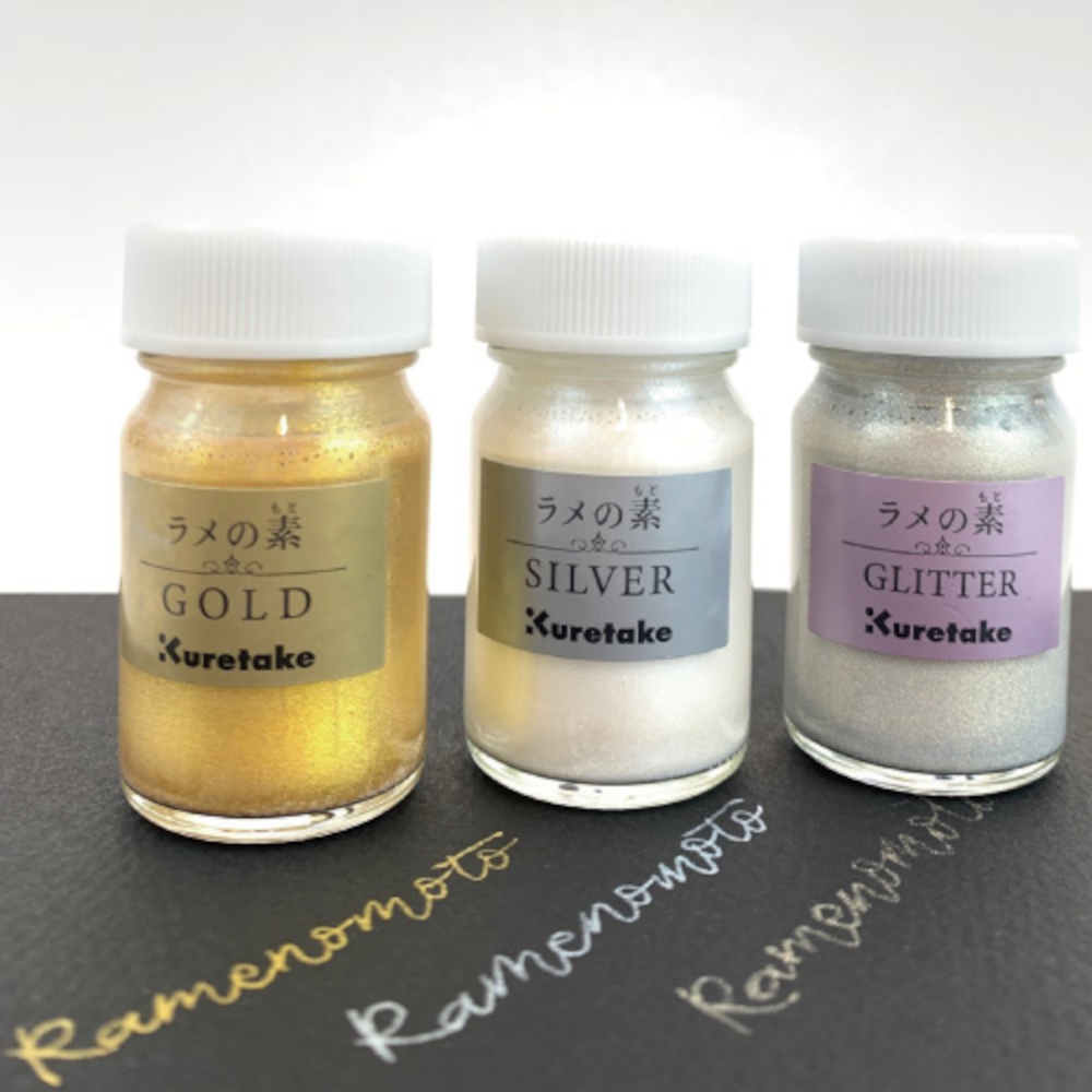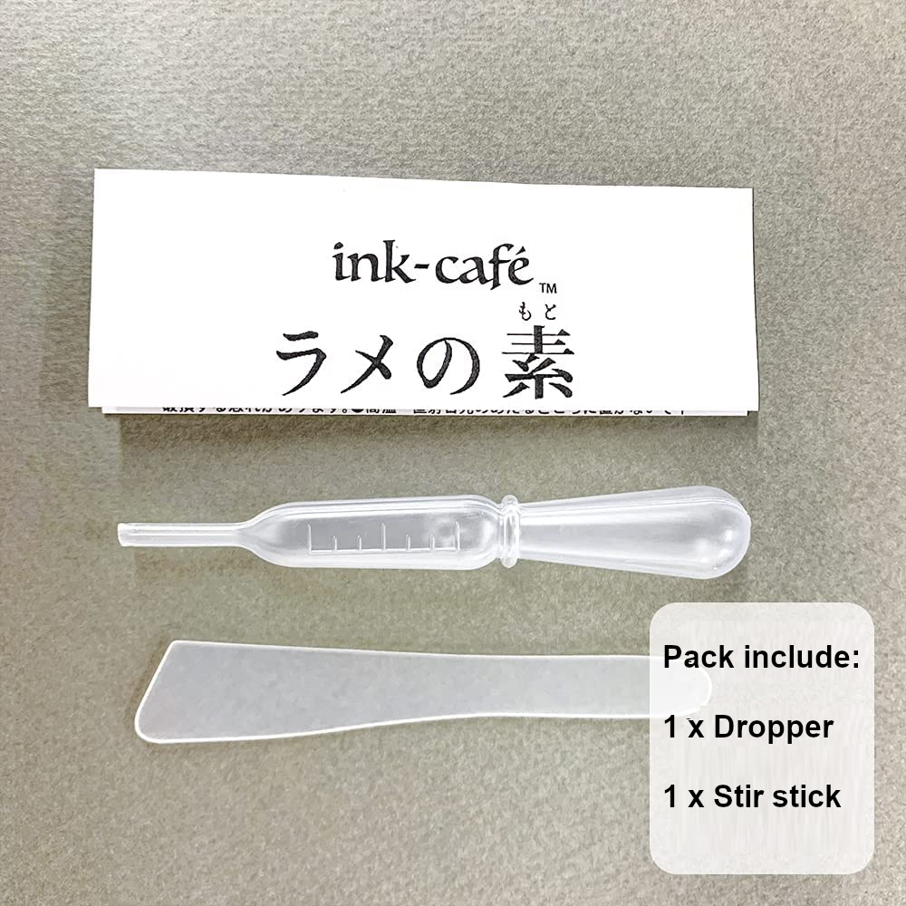 *Do not fill a Fountain pen or any other refillable pen with this ink, not even the ZIG Kuretake Karappo pen! The ZIG Kuretake Karappo pen is designed to be used with Ink-café dye ink, but not with metallic colour ink. Once metallic ink is mixed, this will cause the pen to become clogged up.