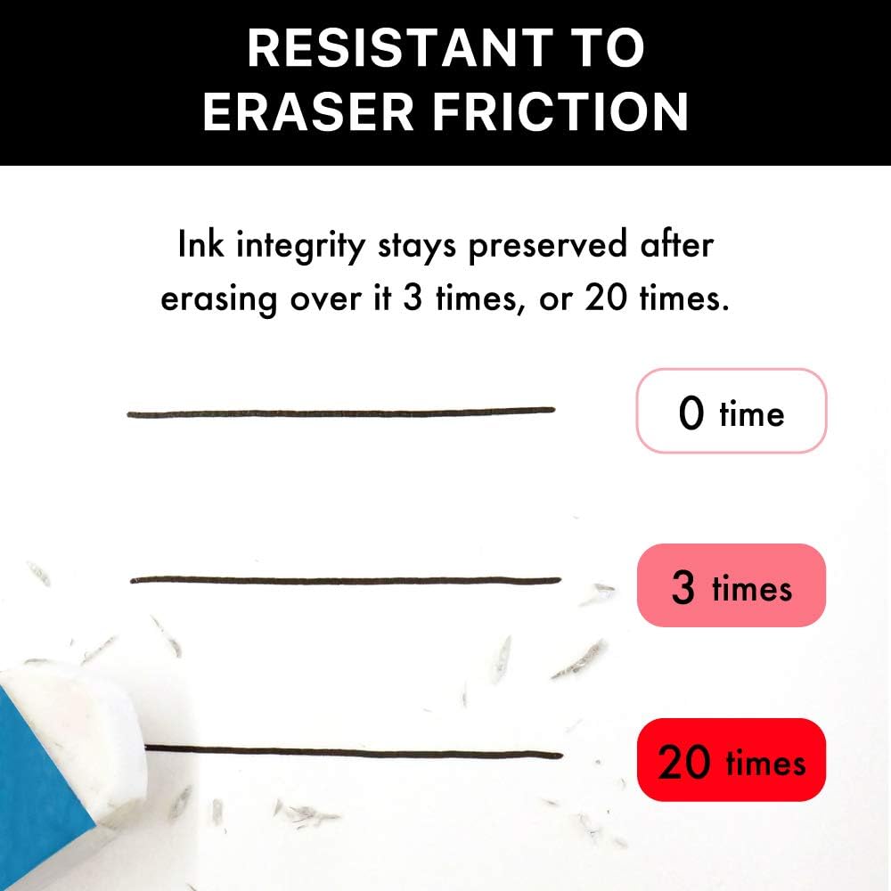 - Even if you use an eraser over the ink, the color will remain clear and not become faded